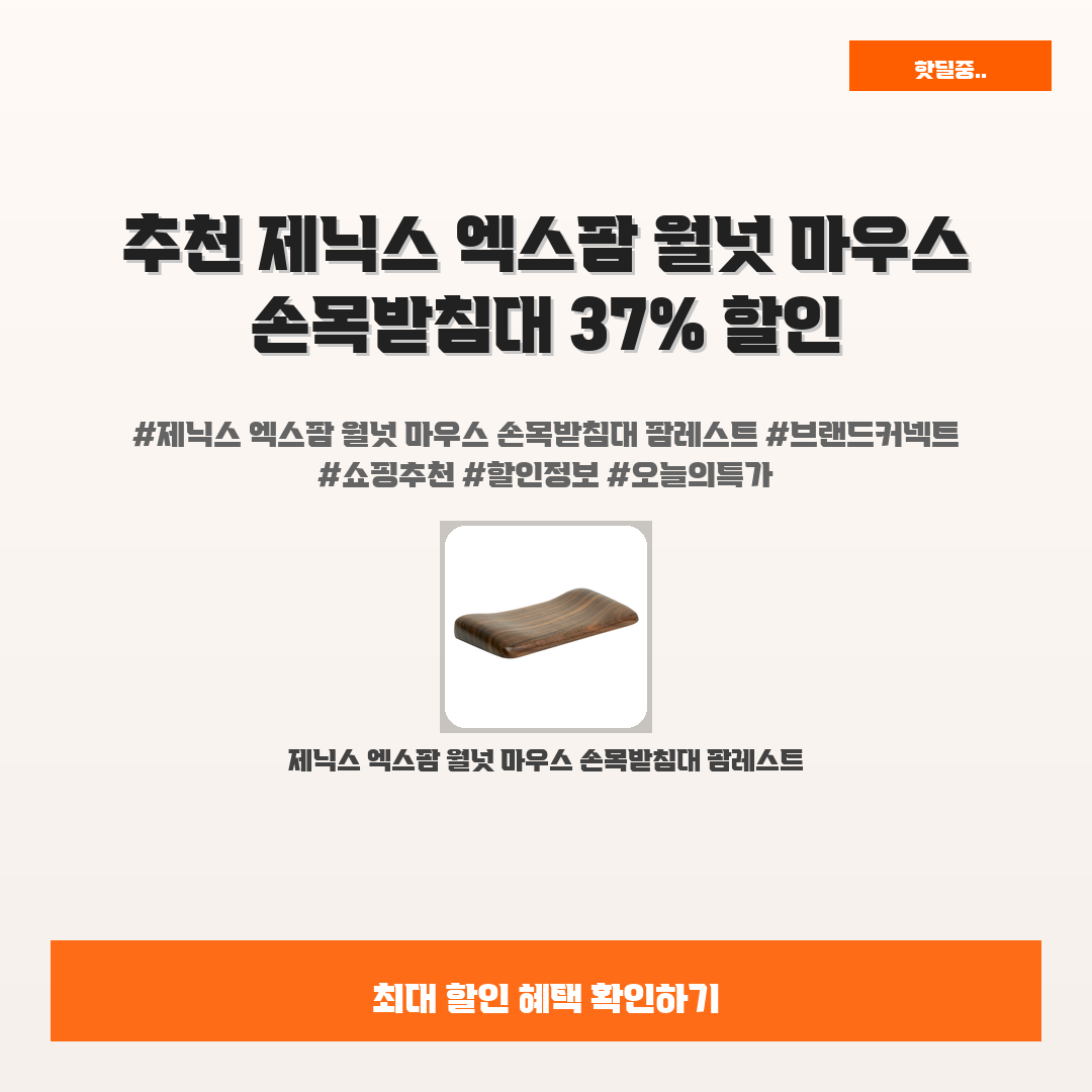 🛍️ 이 포스팅은 네이버 쇼핑 커넥트 활동의 일환으로,판매 발생 시 수수료를 제공받습니다.오늘 소개할 제품은 단언컨데,,바로 제닉스 엑스팜 월넛 마우스 손목받침대 팜레스트입니다!평소 컴퓨터 앞에서 오랜 시간을 보내는 당신! 손목의 피로감이 느껴지진 않나요?이제는 더 이상 축 늘어진 손목이 아프지 않도록 도와줄 최고의 솔루션이 여기 있습니다.이 제품으로 제대로 된 손목 지지대를 경험해보세요! 사용하면 할수록 느끼는 편안함, 누구나 쉽게 느낄 수 있어요.그렇다고 비싼 가격에 망설일 필요도 없답니다! 현재 37% 할인된 9,900원에 만나볼 수 있으니, 찬스를 놓치지 마세요!여러분의 손목을 위한 특별한 선택, 제닉스 엑스팜 월넛 마우스 손목받침대 팜레스트와 함께 건강한 컴퓨터 작업 환경을 만들어보세요!※ 이..