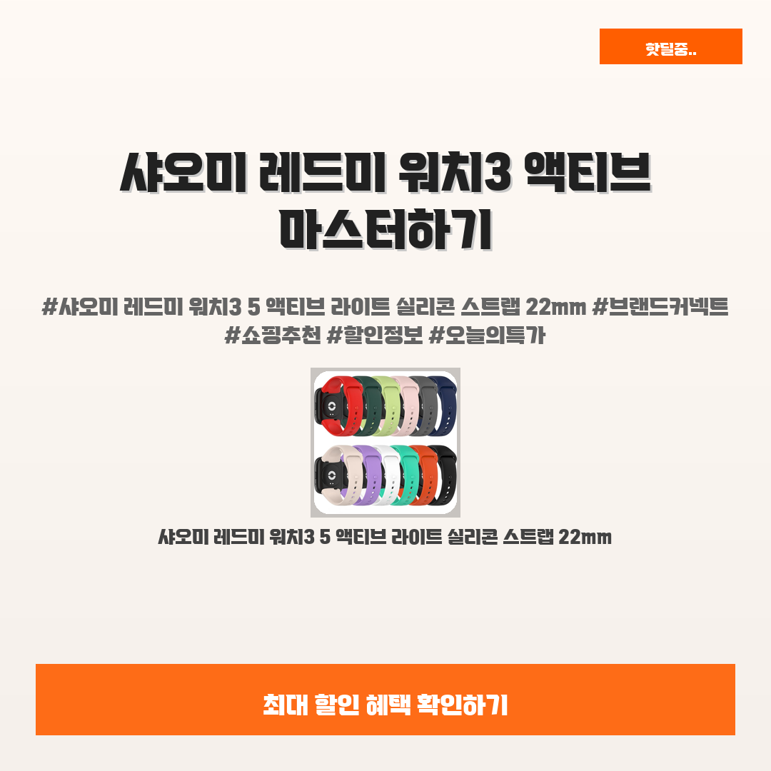 🛍️ 이 포스팅은 네이버 쇼핑 커넥트 활동의 일환으로,판매 발생 시 수수료를 제공받습니다.오늘 소개할 제품은 단언컨데,,그야말로 완벽한, 갓벽한, 감동적인 제품이라구요요즘 샤오미 레드미 워치3 5 액티브 라이트 실리콘 스트랩 22mm 덕분에 스마트워치의 매력에 푹 빠졌어요!이 스트랩은 편안함을 넘어 스타일까지 만족시켜주는데요, 운동할 때나 일상에서 모두 완벽하답니다.친구 생일 선물로 남겼더니, "이거 진짜 대박이다!"라며 연락이 쏟아졌어요여러분도 이 행복감을 꼭 느껴보세요! 진짜 완전 추천해요그리고 진심 말씀드리자면, 가성비가 미쳤어요. 이 제품을 쓰면서 주변에 자랑하고 다닐 정도랍니다!그래서 여러분도 망설이지 말고 샤오미 레드미 워치3 5 액티브 라이트 실리콘 스트랩 22mm를 만나보세요!※ 이거 진..