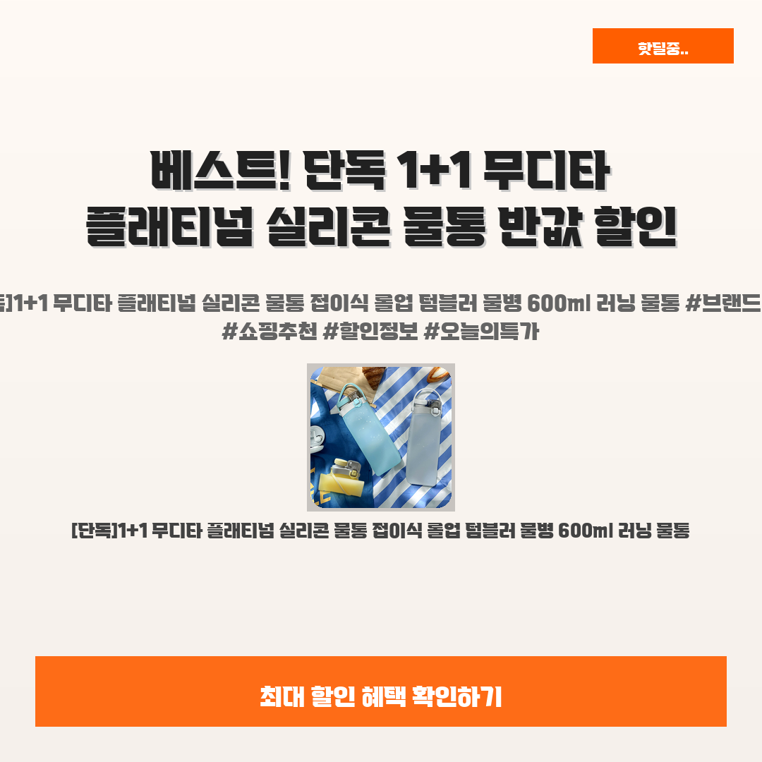 🛍️ 이 포스팅은 네이버 쇼핑 커넥트 활동의 일환으로,판매 발생 시 수수료를 제공받습니다.오늘 소개할 제품은 단언컨데,,그야말로 최고의, 놀라운 아이디어 상품이라구요요즘 밖에서 운동할 때마다 간편하게 물을 담을 수 있는 런닝 물통을 찾고 계신가요?그러면 "[단독]1+1 무디타 플래티넘 실리콘 물통 접이식 롤업 텀블러 물병 600ml"가 바로 그 해결책이에요!이 물통은 단순한 물병이 아니라, 당신의 세상 모든 활동을 더 편리하게 만들어 줄 가성비 갑 아이템이에요. 정말 만족스러울 거예요!사람들이 반하는 이유는 제품의 품질과 디자인이 뛰어난 데다가, 지금은 무려 51% 할인된 가격으로 제공되고 있기 때문이죠!쉽게 접고 펼 수 있는 이 물통은 공간 활용도도 뛰어나니, 운동할 때 친구들과 공유하는 것도 가능한..