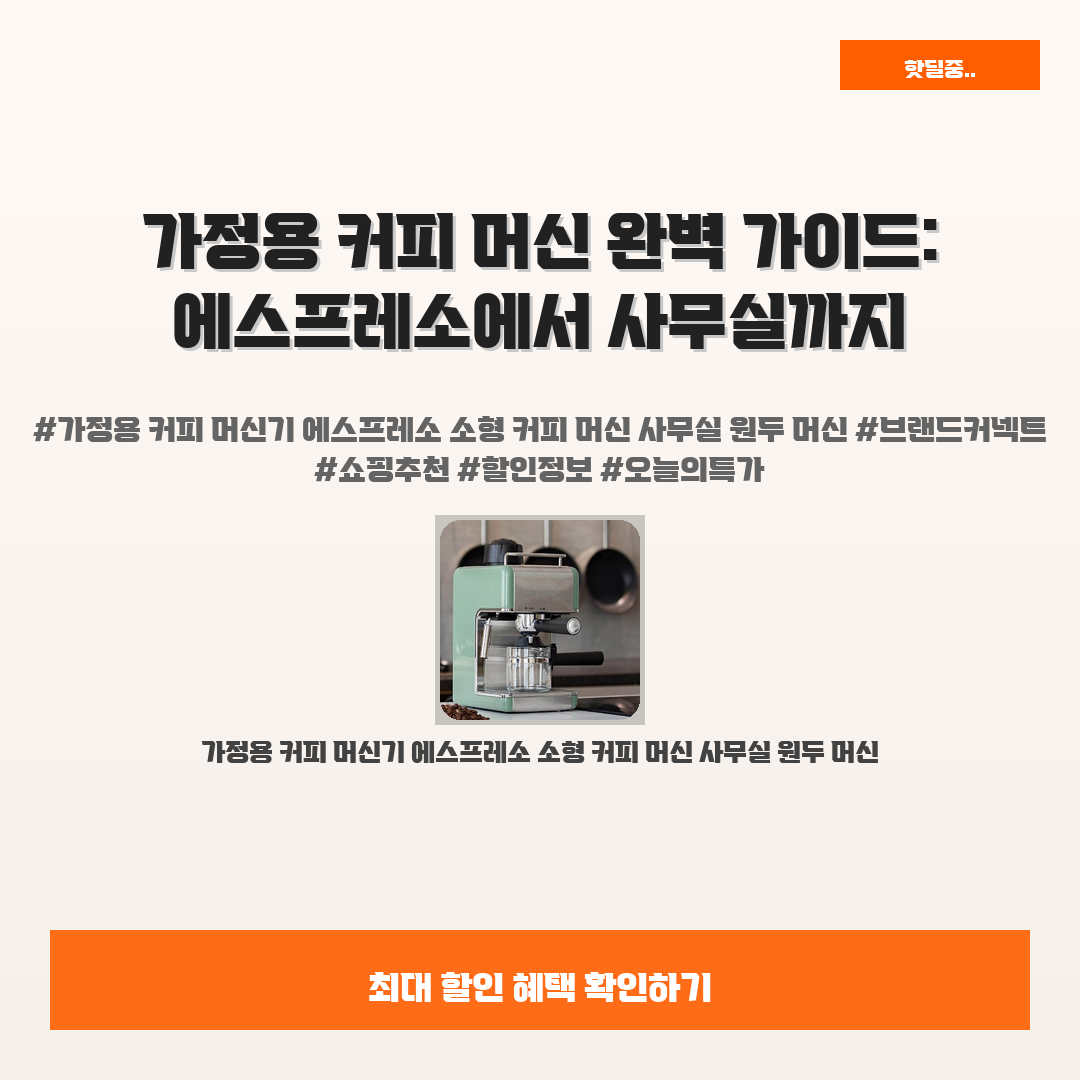 🛍️ 이 포스팅은 네이버 쇼핑 커넥트 활동의 일환으로,판매 발생 시 수수료를 제공받습니다.이번에 소개할 상품은,,바로 가정용 커피 머신기예요!아침에 일어나자마자, 혹은 사무실에서 듣는커피 향기만큼 좋은 게 있을까요? 여러분도맛있는 커피 한 잔의 소중함을 느끼고 싶다면,"가정용 커피 머신기 에스프레소 소형 커피 머신 사무실 원두 머신"가 정답이에요!이 제품이 있으면 언제 어디서든 완벽한 커피를 즐길 수 있어요.진짜 친구들에게 자랑하고 싶을 만큼 마음에 드실 거예요. 😊게다가 79,000원의 가격은 가성비도 최고!이 기회를 놓치지 마세요!※ 이거 진짜 제가 직접 써보고 쓰는 리뷰예요 광고 아님!!가정용 커피 머신기 에스프레소 소형 커피 머신 사무실 원두 머신11% 89,000원79,000원가정용영업용매장..
