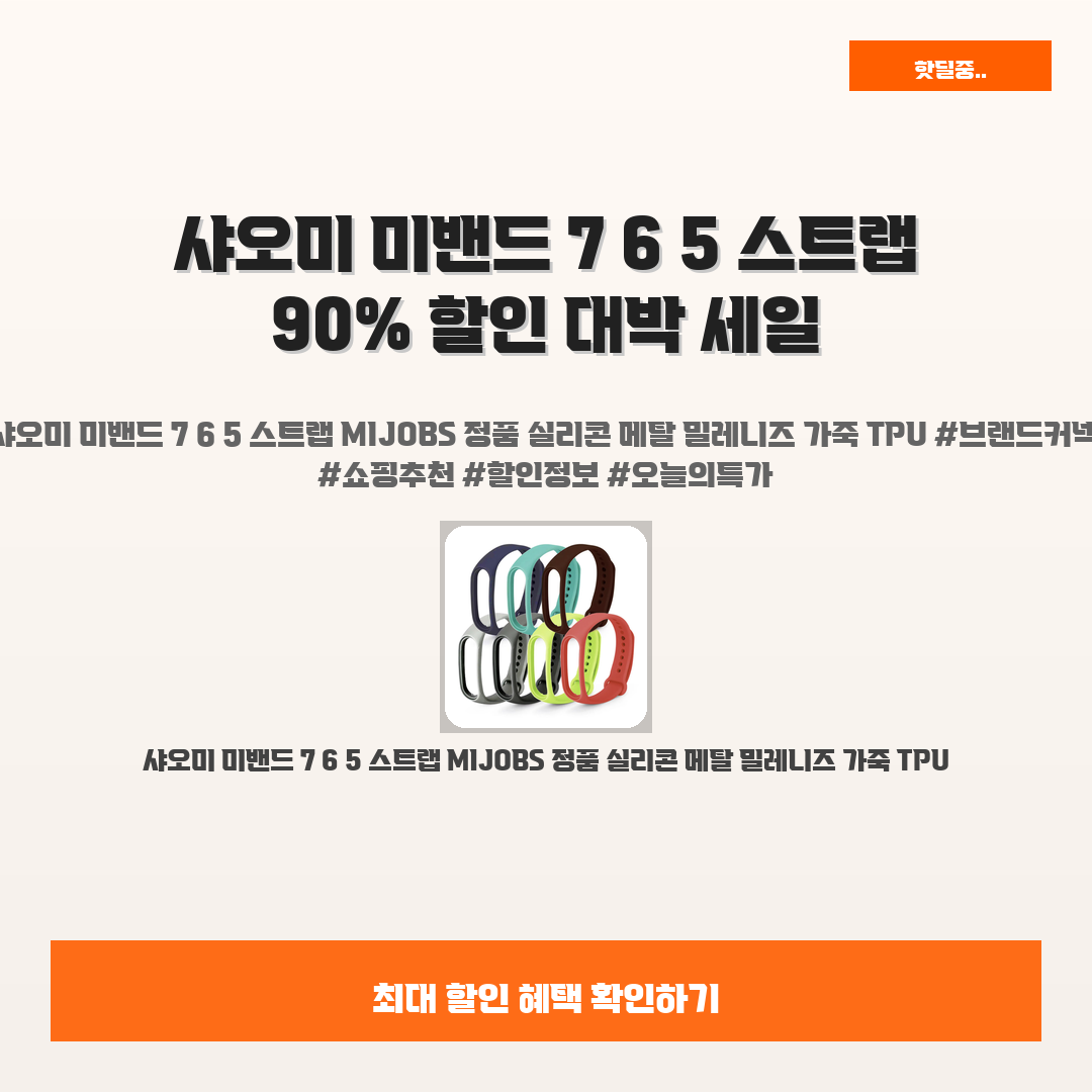 🛍️ 이 포스팅은 네이버 쇼핑 커넥트 활동의 일환으로,판매 발생 시 수수료를 제공받습니다.오늘 소개할 제품은 단연코,,바로 샤오미 미밴드 7 6 5 스트랩입니다! 이건 실리콘에서 메탈, 밀레니즈, 가죽, TPU까지 다양한 스타일을 자랑해요.요즘 많은 분들이 웨어러블 기기를 착용하실 텐데요,그럴수록 매력적인 스트랩이 필요하잖아요! "어떤 스트랩을 골라야 할까?"라는 고민은 이제 그만하세요.샤오미 미밴드 7 6 5 스트랩를 찾으신다면, 지금이 기회입니다! 90% 할인으로 정품 MIJOBS 스트랩을 만나볼 수 있는 절호의 찬스니까요! 더 많은 사람들과 함께 이 특별한 기쁨을 누려보세요!직접 착용해보고 너무 마음에 들어서 주위에 추천하고 다닌답니다. 이 가성비를 놓치면 후회할 것 같아요. 할인된 가격으로 멋진..