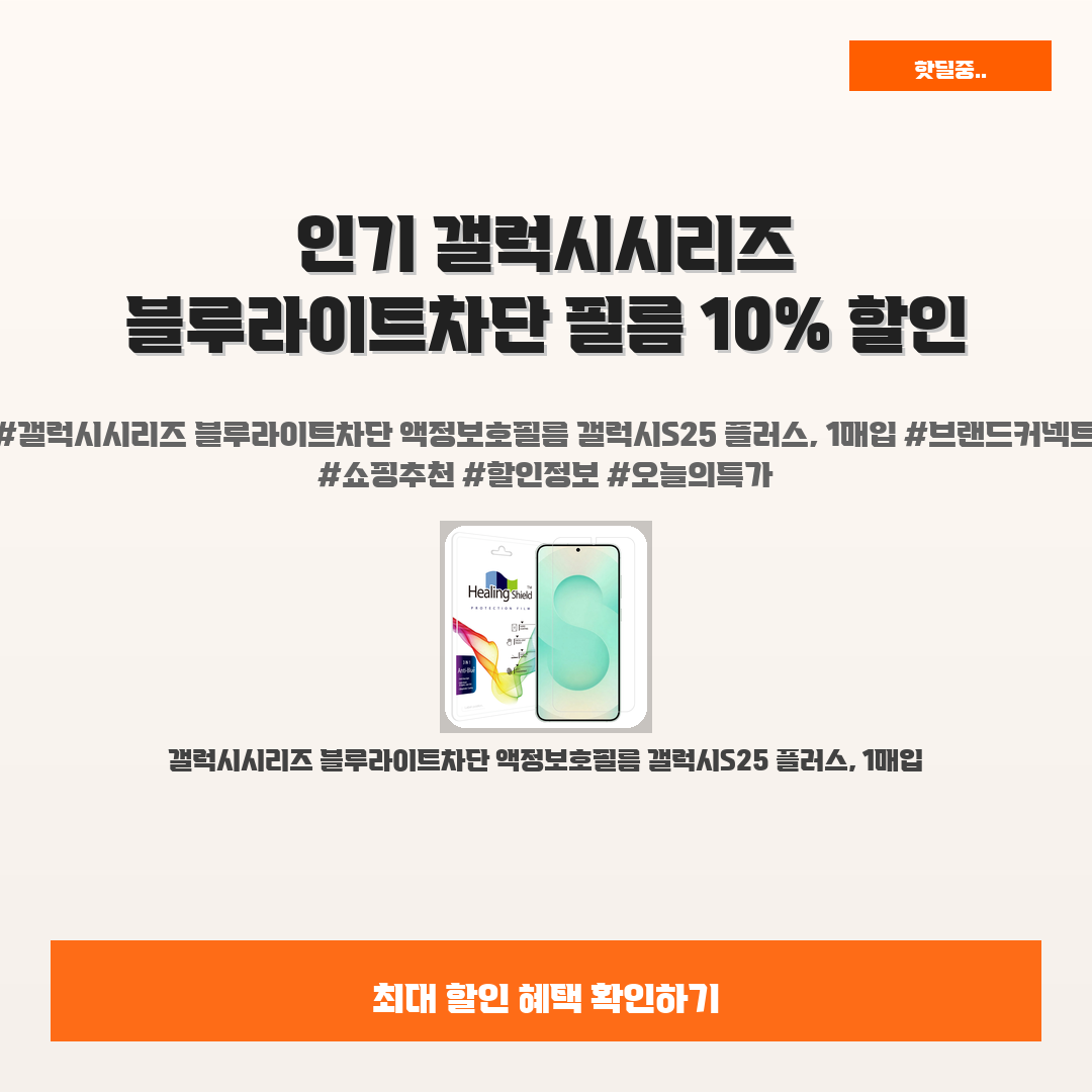🛍️ 이 포스팅은 네이버 쇼핑 커넥트 활동의 일환으로,판매 발생 시 수수료를 제공받습니다.오늘 소개할 제품은 단연코,,바로 인기 있는 갤럭시시리즈 블루라이트차단 액정보호필름입니다!스마트폰을 사용할 때 눈의 피로감, 정말 공감하시죠? 갤럭시S25 플러스 사용자라면 더욱 그런 고민이 클 것 같은데요. 그런 여러분을 위해 이번에 특별히 블루라이트차단 액정보호필름이 10% 할인 혜택으로 여러분께 다가갑니다!이 필름 하나로 📱눈 건강과 함께 스크래치 걱정도 덜 수 있답니다. 가성비를 넘은 놀라운 품질, 그리고 만족감을 직접 느껴보세요! 아, 원래 가격은 7,800원이지만, 지금은 단 7,020원으로 만나볼 수 있어요. 정말 후회하지 않을 선택이 될 거예요!※ 이거 진짜 제가 직접 써보고 쓰는 리뷰예요 광고 아..